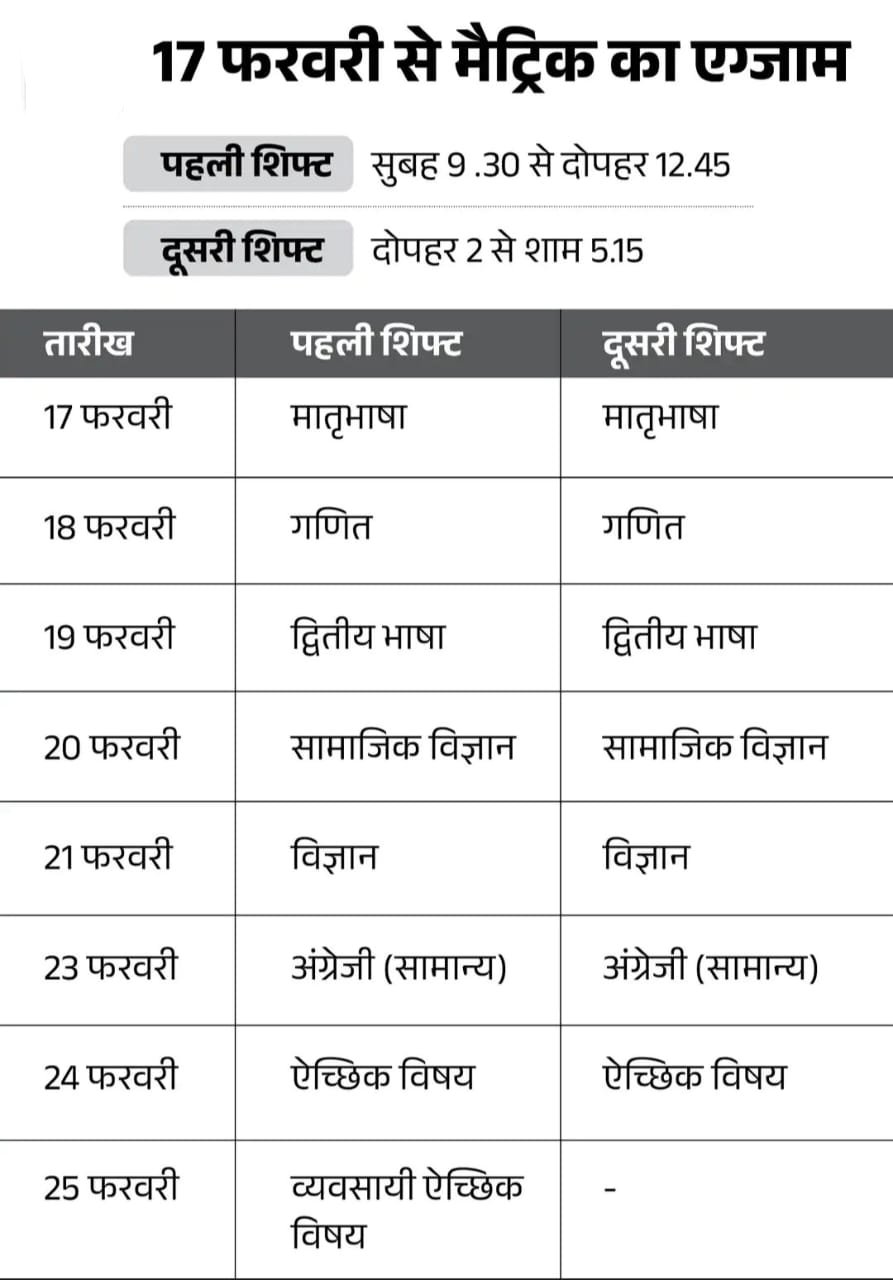 मैट्रिक फाइनल परीक्षा 2026 कितनी पाली में होगी?